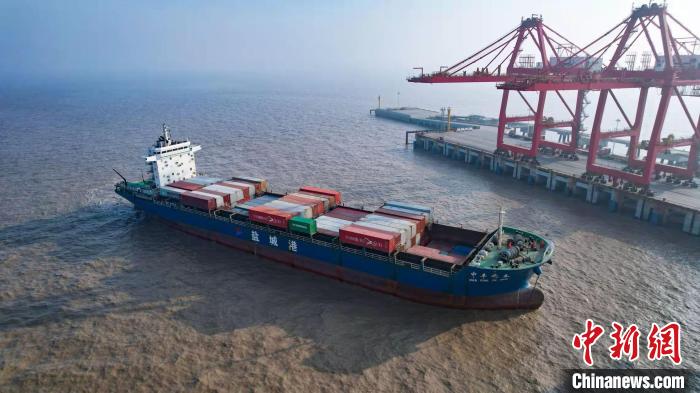 裝載農(nóng)副產(chǎn)品的貨輪駛向上海。 鹽城港集團供圖