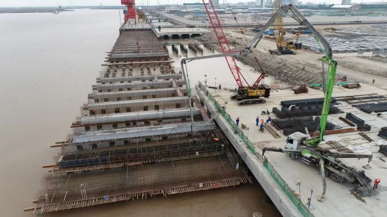 強勁增長背后,是專業化碼頭集群的加速成型。依托得天獨厚的“風光”資源,鹽城港射陽港區針對風電設備運輸的特殊需求,主動提級擴能,正加速推進四期工程建設,為外貿出口按下“加速鍵”。“改造后引橋寬度增加30%,可滿足150米級超長設備運輸需求。”項目負責人楊曉平介紹,根據建設計劃,碼頭水工結構預計于今年年底竣工,項目全面運營后,年運輸能力可達250套整機和400套葉片,將充分保障港區風電產業的長遠發展需求。