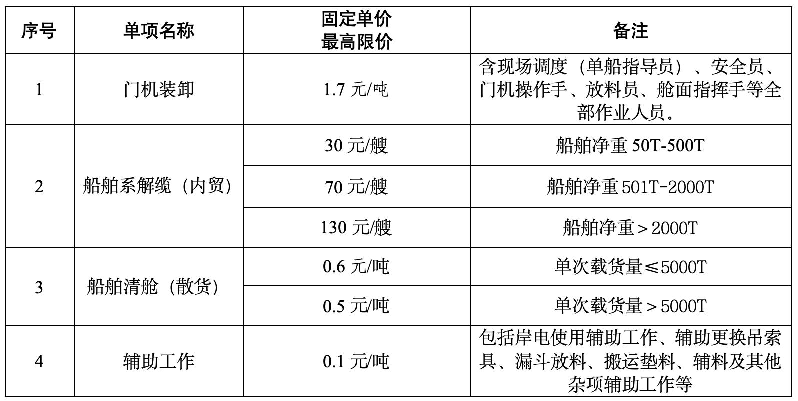 2、招標內容:萬噸級通用碼頭4#泊位裝卸作業、船舶清艙業務外包服務包括(包括但不限于):射陽港4#通用泊位的裝卸搬運:含現場調度(單船指導員)、安全員、門機操作手、放料員、艙面指揮手等全部作業人員(包括招標人提供:2臺門機、2臺漏斗;投標人自備:裝載機、運輸車輛、通勤車輛等設備操作);輔助工作:岸電使用輔助工作、輔助更換吊索具、漏斗放料、搬運墊料、輔料及其它雜項輔助工作;船舶清艙:含機械、人工入艙清理(含指揮)、道口至碼頭面區域的清理工作;船舶系解纜(船舶解、系纜及其輔助工作)等,詳見招標需求。招標人保留對招標范圍進行調整的權利。