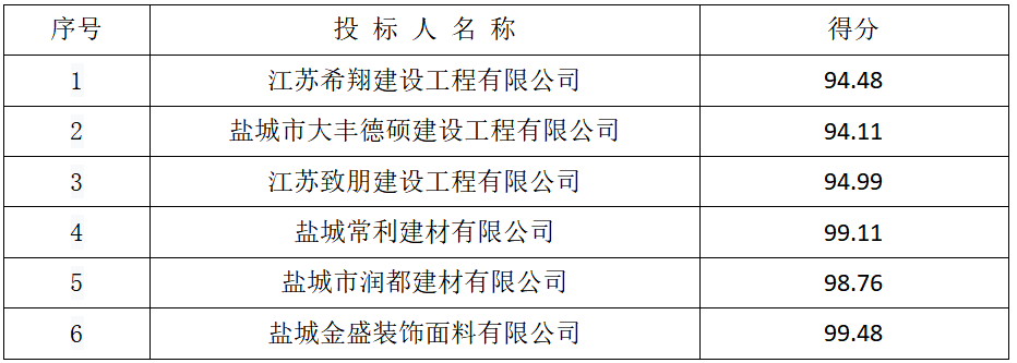 3、所有有效投標人得分情況