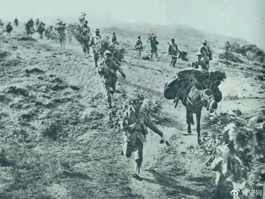 圖為1947年5月在孟良崮戰役中,華東野戰軍向孟良崮挺進。
