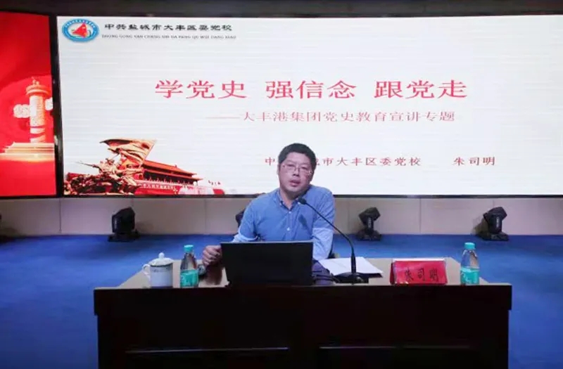 6月5日上午,大豐港區(qū)開展“學黨史、強信念、跟黨走”黨史宣講活動。大豐港區(qū)黨委副書記、董事、總經(jīng)理繆存美,大豐港區(qū)領導班子全體、港區(qū)機關全體和各子公司中層副職以上干部參加活動。