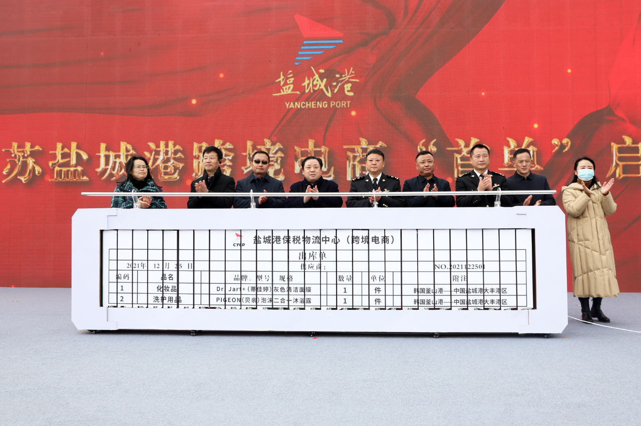 12月25日,江蘇鹽城港跨境電商“首單”啟動暨鹽城港保稅物流中心與江蘇省產業技術研究院兩岸產業促進中心跨境電商戰略協議簽約儀式,在鹽城港保稅物流中心隆重舉行。集團黨委書記、董事長、總經理周正雄,鹽城海關副關長李健,市商務局副局長喬振,市國資委副主任成友貴,集團黨委委員、紀委書記周旭東,集團總經理助理孫永峰以及大豐區相關部門負責同志出席啟動儀式并鑒簽。集團黨委委員、董事、副總經理夏立新主持活動。