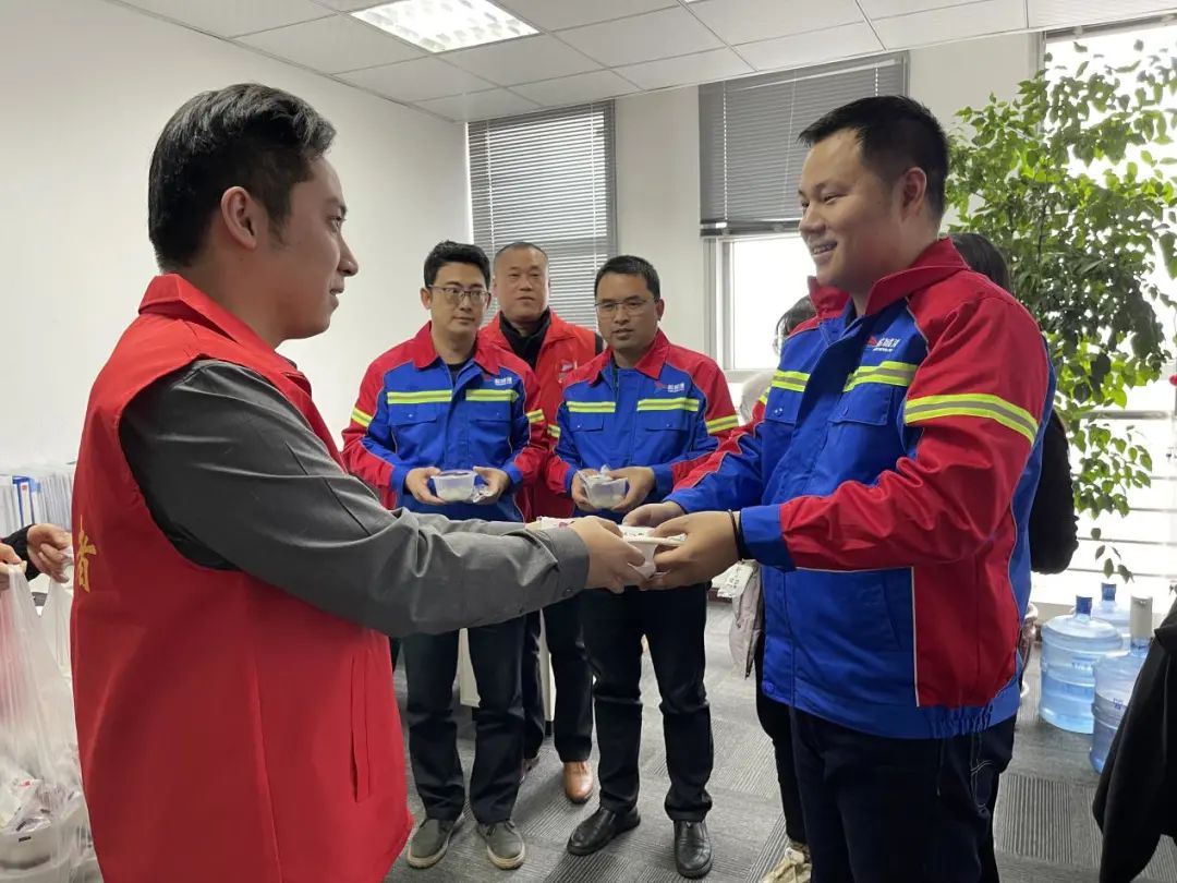 隨后,大家分工協作、緊密配合,將一顆顆親手制作的甜美湯圓盛在碗里,各公司主要領導將精心包裝好的湯圓送到生產一線和外貿勞務專班隔離點每一位員工手上,向他們致以節日的祝福和慰問,并鼓勵他們大力弘揚勞動精神和工匠精神,為公司發展貢獻更大智慧和力量。