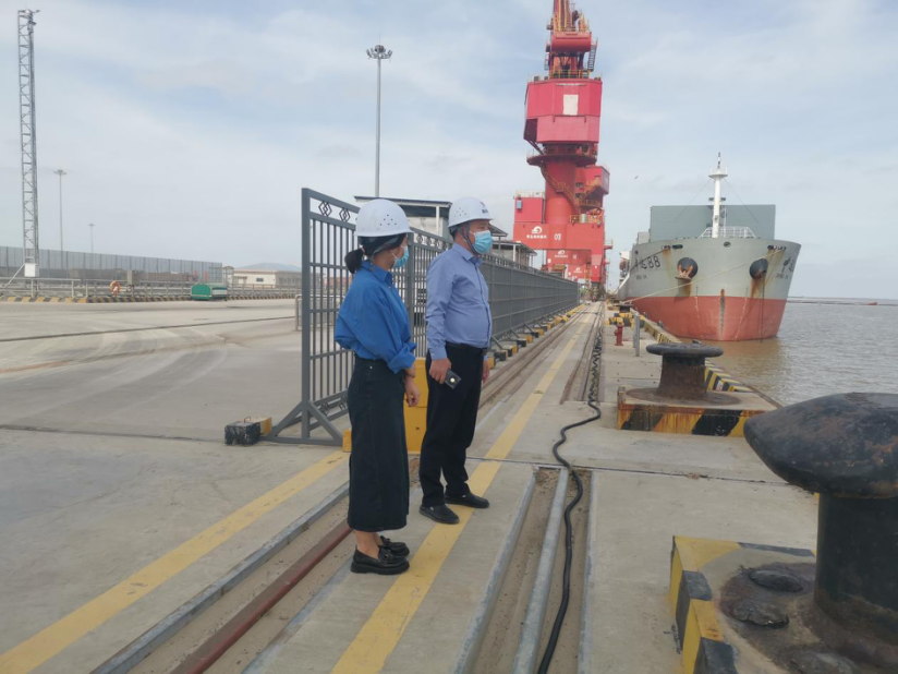 丁安廣一行認(rèn)真檢查了進(jìn)港檢查點(diǎn)進(jìn)港人員檢查和登記情況,實(shí)地察看射陽(yáng)港區(qū)碼頭作業(yè)現(xiàn)場(chǎng),詳細(xì)聽(tīng)取了射陽(yáng)港區(qū)對(duì)安全生產(chǎn)、疫情防控工作開(kāi)展情況匯報(bào)。丁安廣指出,在國(guó)慶長(zhǎng)假即將來(lái)臨和黨的二十大即將召開(kāi)的這一特殊時(shí)期,射陽(yáng)港區(qū)要嚴(yán)格按照鹽城港集團(tuán)黨委的部署要求,在思想上再重視,堅(jiān)持“穩(wěn)”字當(dāng)頭、統(tǒng)籌兼顧,在現(xiàn)有工作基礎(chǔ)上,全力以赴抓好各項(xiàng)安全維穩(wěn)措施落實(shí)。一類口岸開(kāi)放在即,要加強(qiáng)外籍船舶、人員、貨物的防疫管理,堅(jiān)決守好海上國(guó)門(mén),筑牢疫情防控“海上防線”,為黨的二十大勝利召開(kāi)營(yíng)造良好環(huán)境。