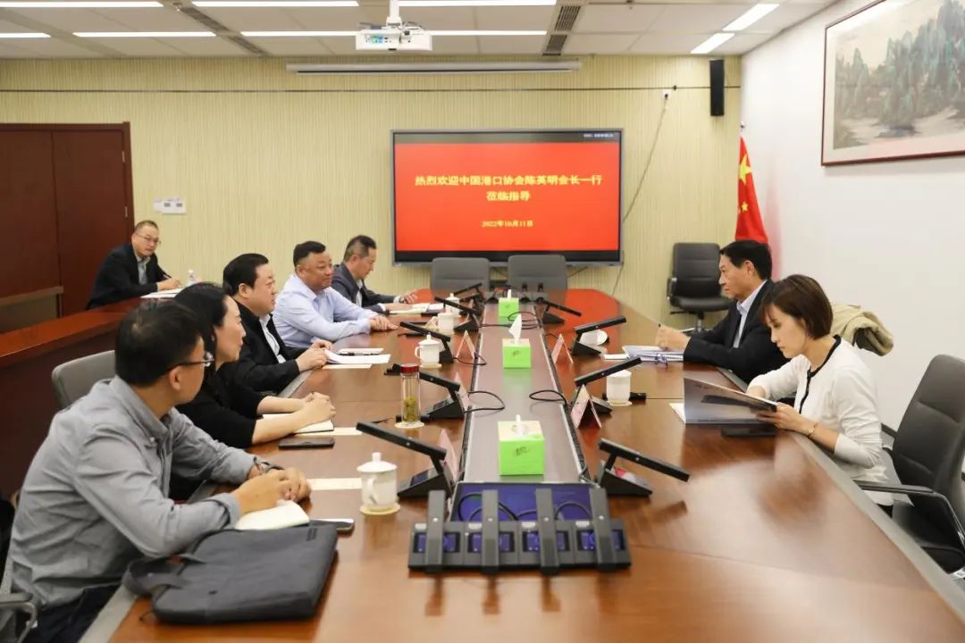 10月11日,中國港口協(xié)會常務(wù)副會長陳英明率隊來我集團進行調(diào)研,集團黨委書記、董事長周正雄接待陳英明一行。中國港口協(xié)會副秘書長顧寅,集團黨委委員、紀委書記周旭東,集團副總經(jīng)理袁欣,集團總經(jīng)理助理孫永峰等參加。