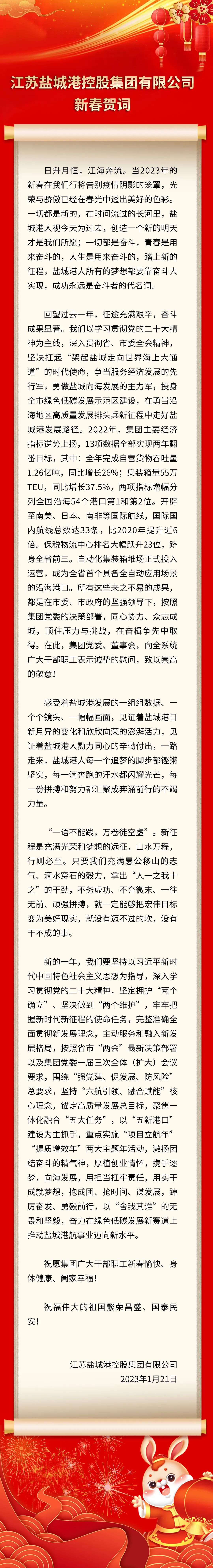 江蘇鹽城港控股集團(tuán)有限公司新春賀詞