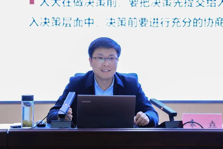 會上,袁垚圍繞習近平總書記在全國兩會上的重要講話精神、全國兩會基本情況、2023年政府工作報告要點、2023年兩會熱點重點內容等方面內容,并結合鹽城港的發展和工作實際,對全國兩會精神進行了深度解讀。