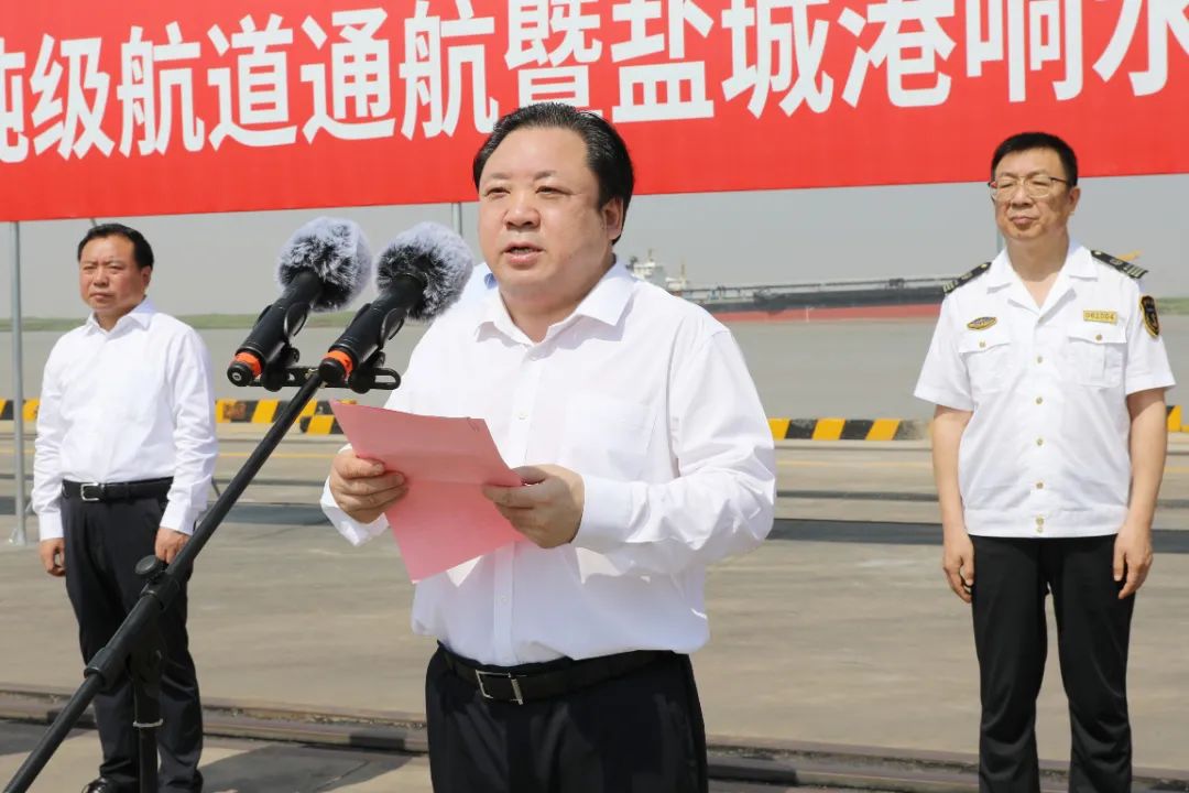 在全市上下深入學(xué)習(xí)貫徹市委八屆七次全會(huì)精神,勇當(dāng)全省發(fā)展新質(zhì)生產(chǎn)力的“碳路先鋒”,全面推進(jìn)“水運(yùn)江蘇”建設(shè)和海洋經(jīng)濟(jì)高質(zhì)量發(fā)展的重要時(shí)刻,6月13日上午,灌河口5萬噸級(jí)航道通航暨鹽城港響水港區(qū)至東非國(guó)際航線開通活動(dòng)成功舉行,標(biāo)志著鹽城沿海“一港四區(qū)”萬噸級(jí)以上航道實(shí)現(xiàn)通航全覆蓋,對(duì)鹽城港加快構(gòu)建“河海聯(lián)運(yùn)”新格局,推動(dòng)沿海地區(qū)高質(zhì)量發(fā)展,打造“藍(lán)色經(jīng)濟(jì)”增長(zhǎng)極具有重要意義。市委常委、副市長(zhǎng)王連春宣布通航。鹽城港集團(tuán)黨委書記、董事長(zhǎng)周正雄介紹相關(guān)情況。連云港海事局副局長(zhǎng)丁星,響水縣委書記郭超出席活動(dòng)并致辭。市政府副秘書長(zhǎng)陶曉林主持。