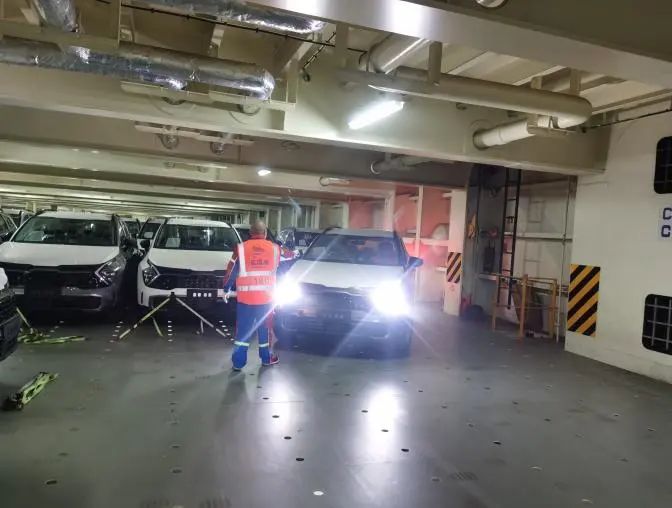 業(yè)務(wù)開展期間,工作人員密切配合,對每臺車輛進(jìn)行固定和檢查,熟練地進(jìn)行綁扎工作,確保車輛在運(yùn)輸過程中不會發(fā)生絲毫移動(dòng),仔細(xì)查驗(yàn)車輛的外觀和內(nèi)部設(shè)備,不放過任何一個(gè)可能存在的問題,同時(shí)安排專人專崗緊盯作業(yè)流程,嚴(yán)格把關(guān)汽車裝船及加固作業(yè),反復(fù)檢查每一個(gè)螺栓的緊固程度、每一根繩索的拉力大小,確保萬無一失,將高標(biāo)準(zhǔn)作業(yè)貫穿于卸車、驗(yàn)車、收車、裝船、加固等各個(gè)環(huán)節(jié)。