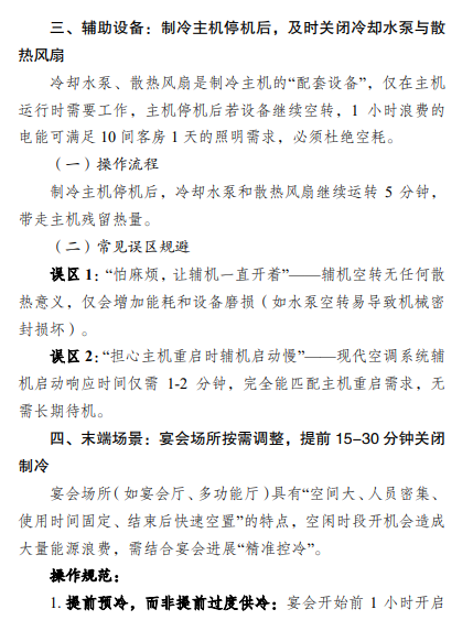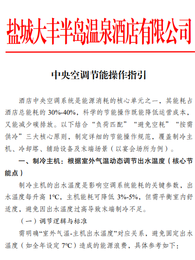 酒店專門編制空調(diào)節(jié)能操作指南,圍繞“負(fù)荷匹配、避免空耗、按需供冷”三大原則,通過(guò)靈活調(diào)節(jié)水溫、分時(shí)運(yùn)行風(fēng)機(jī)、合理預(yù)判宴會(huì)需求等方式,從設(shè)備運(yùn)行到場(chǎng)景適配全流程優(yōu)化,節(jié)電效果顯著。