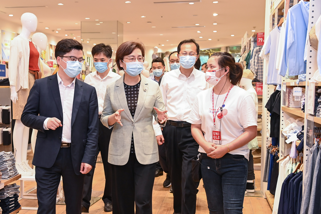 “政策落實得怎么樣?目前經(jīng)營狀況如何?還有什么困難需要解決?”徐纓先后來到新弄里和大有境商業(yè)綜合體,隨機走進(jìn)正在營業(yè)的書店、超市、飯店、酒店、運動館、服飾店和影城等,實地查看復(fù)工復(fù)市情況,了解企業(yè)經(jīng)營狀況,與店主深入交流,詢問大家的所思所想所盼,勉勵要堅定信心、政企攜手,共同努力克服疫情帶來的不利影響。各層各級要精準(zhǔn)施策、靠前發(fā)力,加快落實國家和省市出臺的系列組合式紓困惠企政策措施,讓各類市場主體更有獲得感。