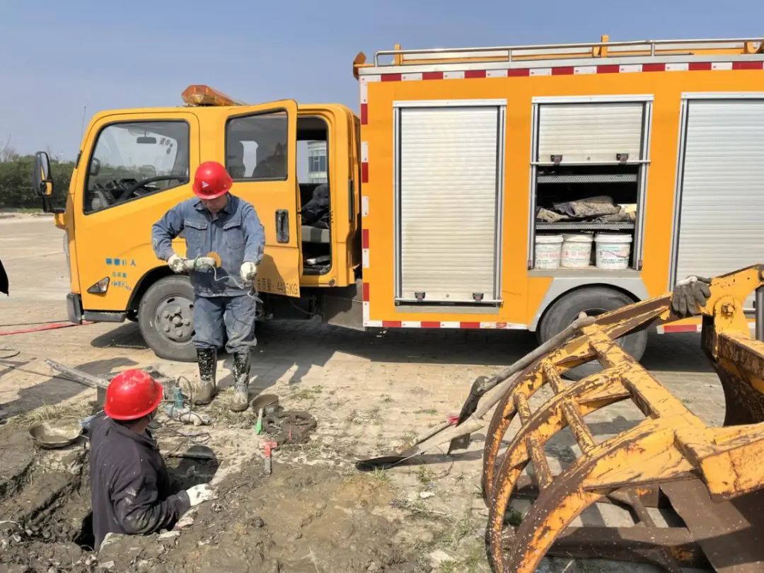 近日,大豐港水務公司報修熱線突然響起,施工方報告:“在上海港路路面出現大量滲水,可能是供水管道漏了”。水務公司工程搶修人員聞訊后,立即趕赴現場。