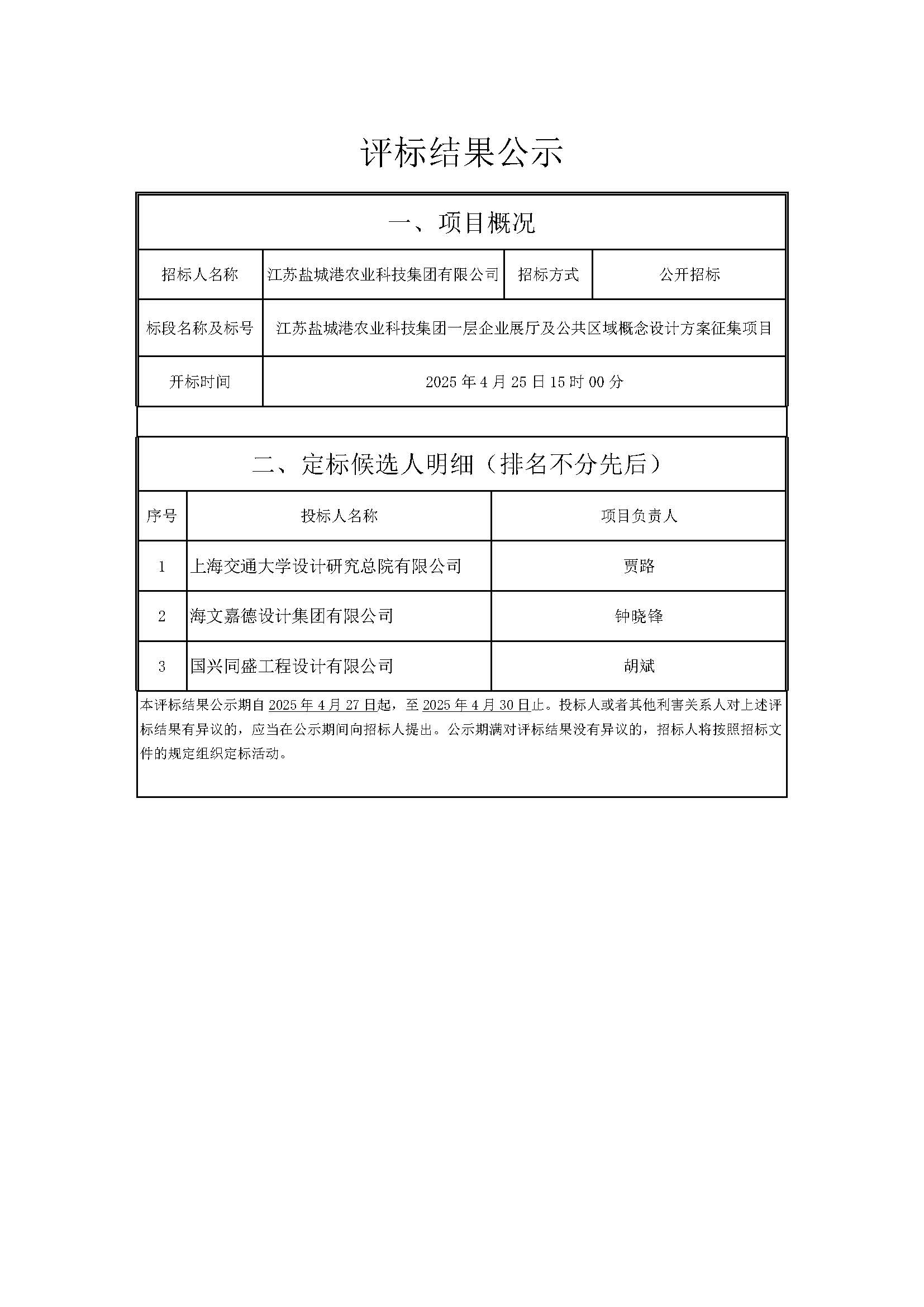 評(píng)標(biāo)結(jié)果公示
