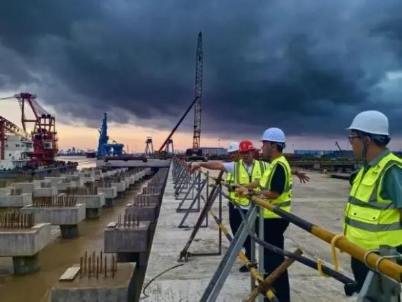 “臺風‘竹節草’逼近,立即啟動應急預案!”7月30日夜,調度室的急促電話劃破寂靜。防臺防汛領導小組全員到崗,通過“船岸協同”機制將施工船舶拖至避風港。安全總監手持應急燈,沿著濕滑的碼頭仔細巡查,每隔一小時便記錄下浪高的數據,靴中積水與汗水交織。