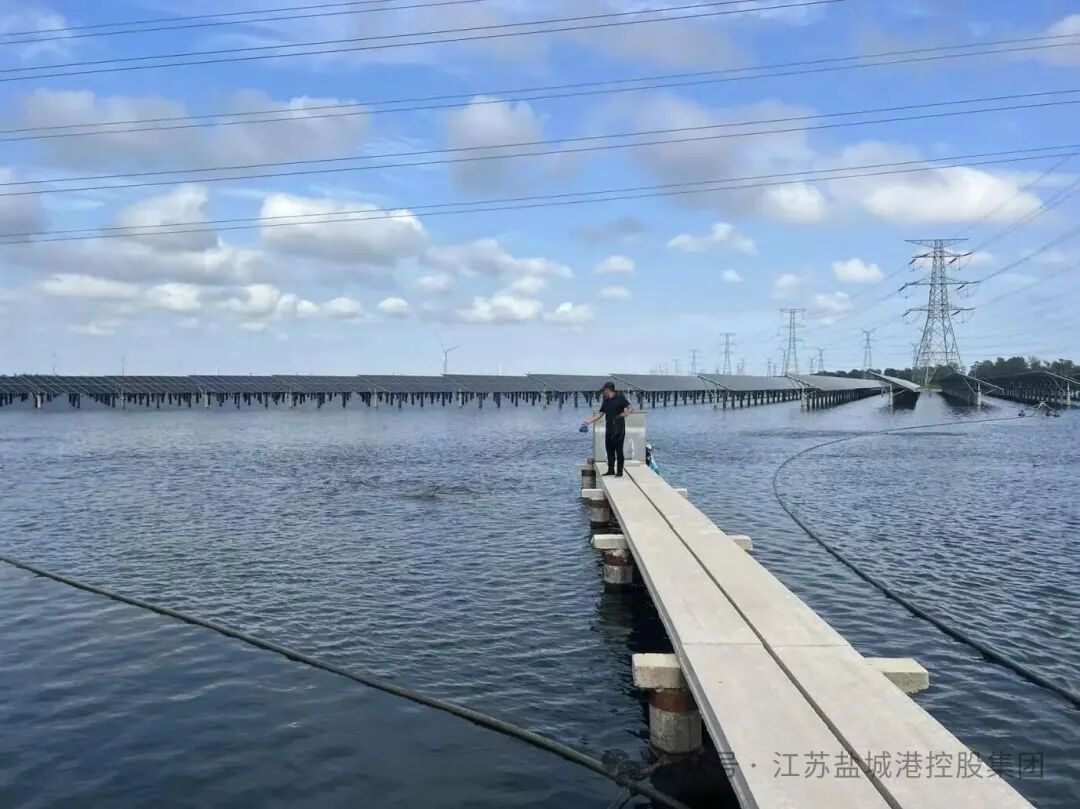 在鹽農(nóng)華豐7956畝的水域上,光伏板整齊排列如藍色海洋,水下魚蝦游弋正歡。這個由鹽城港集團與悅達投資聯(lián)合打造的項目,以“一地兩用、漁光互補”模式實現(xiàn)“上發(fā)電、下養(yǎng)魚”的生態(tài)奇跡。自2024年10月15日并網(wǎng)運行以來,年均發(fā)電量達4.43億千瓦時,每年可節(jié)約標(biāo)煤13.34萬噸,減少二氧化碳排放36.65萬噸,提升養(yǎng)殖密度20%。