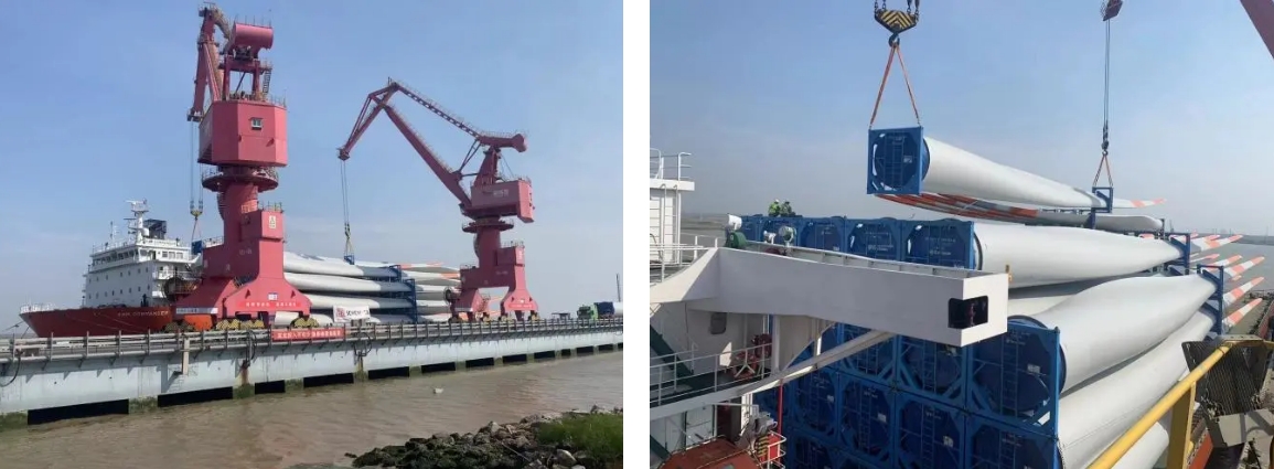 隨著第51支風(fēng)機(jī)葉片支架成功入槽鎖扣,標(biāo)志著鹽城港射陽港區(qū)3.5萬噸級(jí)碼頭1#泊位“海洋指揮官”輪17套風(fēng)葉裝船作業(yè)完美收官。此次作業(yè)不僅實(shí)現(xiàn)了風(fēng)電裝備外貿(mào)業(yè)務(wù)“零突破”;同時(shí)刷新了單層裝載用時(shí)最短、疊碼層數(shù)最高、鎖扣校點(diǎn)最多等多項(xiàng)裝船記錄。