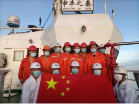 右圖:“申豐之春”班組成員與國旗合影