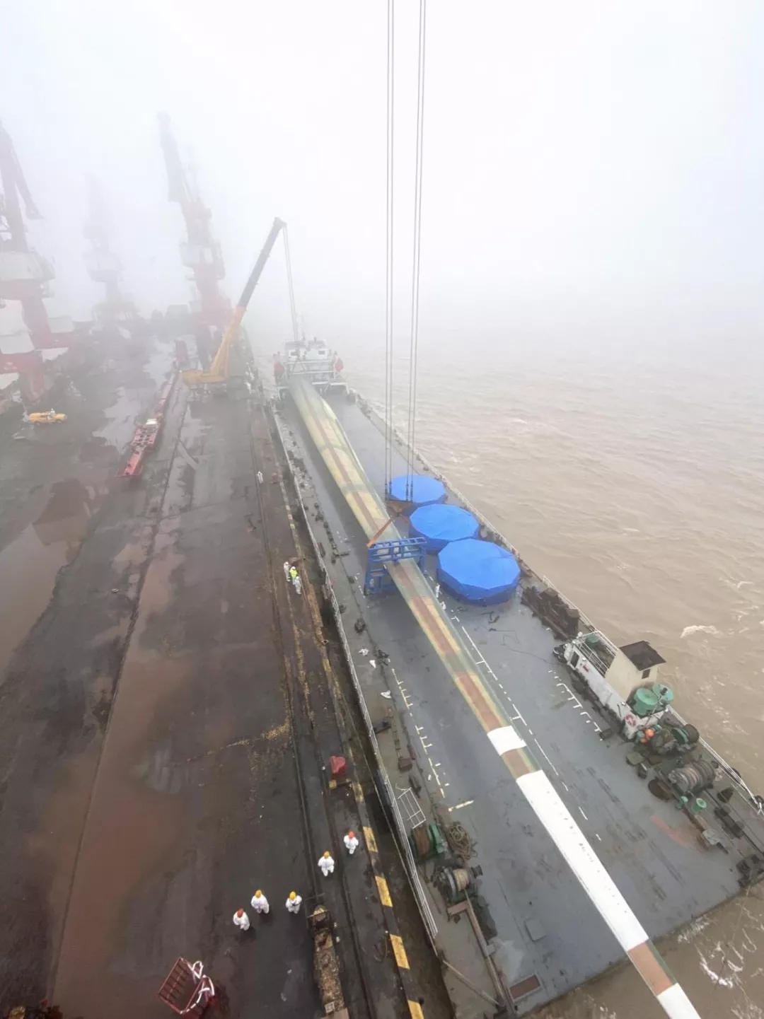 據(jù)悉,此前大豐港區(qū)吊裝的最長的風(fēng)電葉片是90米,為確保本次葉片的成功出運,碼頭吊裝團隊經(jīng)過多次推演和模擬練習(xí),最終采用了“門機+汽吊”協(xié)同抬吊的方式。“風(fēng)電葉片葉根部分重達(dá)50多噸,我們創(chuàng)新改變了之前的吊裝方式,利用500噸吊車吊裝葉根部分與碼頭門機吊裝葉尖部分相配合,成功吊運裝船。經(jīng)過測算,以這種協(xié)同抬吊的方式最為安全。”碼頭吊裝負(fù)責(zé)人介紹道。此次風(fēng)電葉片從起吊到裝運上船,整個過程持續(xù)不到20分鐘,充分展示了鹽城港大豐港區(qū)出色的重大件吊裝技藝。