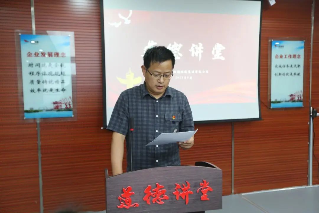 8月27日,大豐港區(qū)開展道德講堂活動(dòng),大豐港集團(tuán)黨委委員、董事陸峰主持,集團(tuán)工會(huì)、黨群工作部相關(guān)人員,各公司工會(huì)副主席、優(yōu)秀職工代表,各公司子女參加高考的職工代表參加。