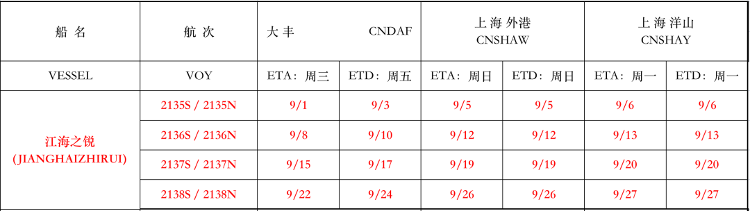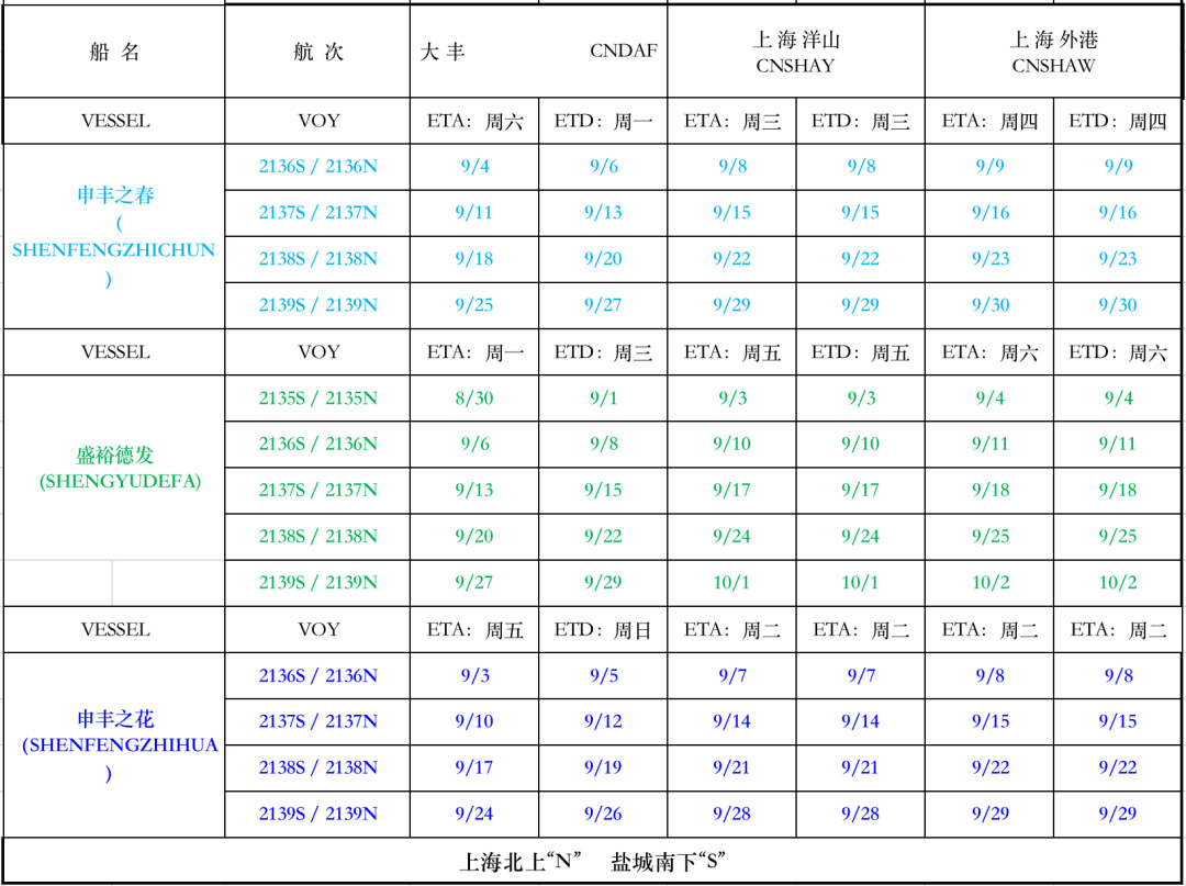 鹽城港大豐港區------上海港(外港/洋山)