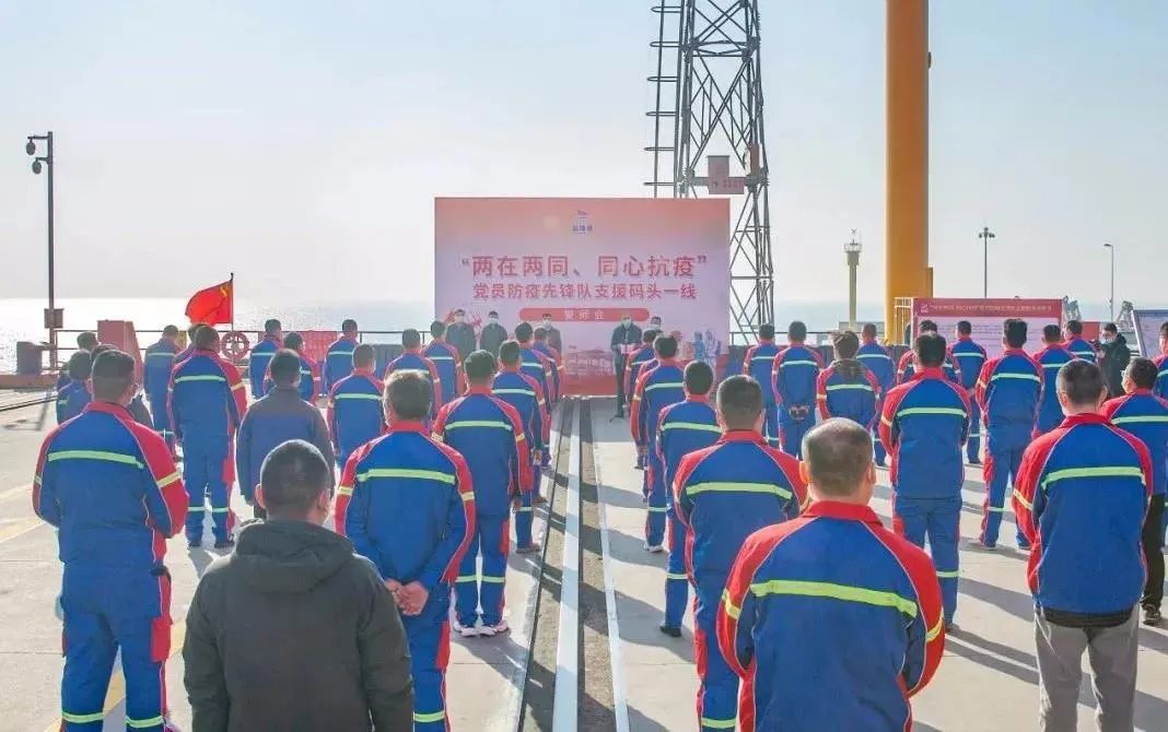 由大豐港區、航運(集裝箱)集團64名黨員組成的防疫先鋒隊支援碼頭一線
