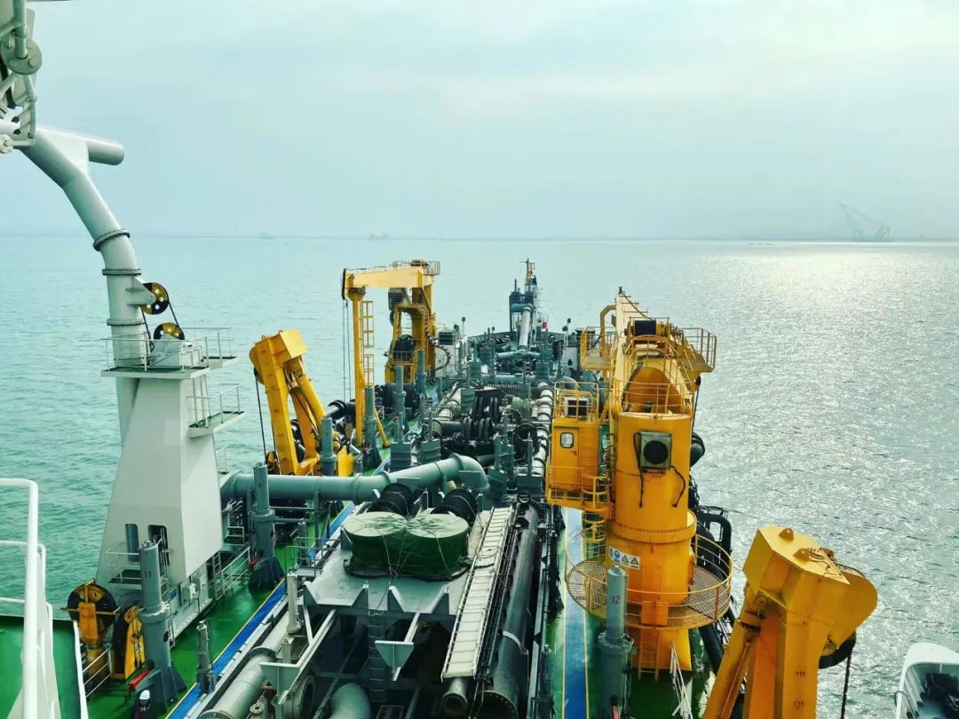 在徐圩港區,記者登上正在進行30萬噸級航道二期工程作業的挖泥船長鯨7輪。“目前虹港石化一期、二期等5個項目已建成投產,盛虹石化等17個項目正在加快建設中。”該航道建設指揮部常務副指揮蔡輝說,徐圩港區二期主體工程6月完工,屆時,30萬噸級的原油海輪就可以抵達徐圩港區,將助力服務保障臨港產業發展,增強港口的總體服務能力,促進連云港沿海產業集聚發展。