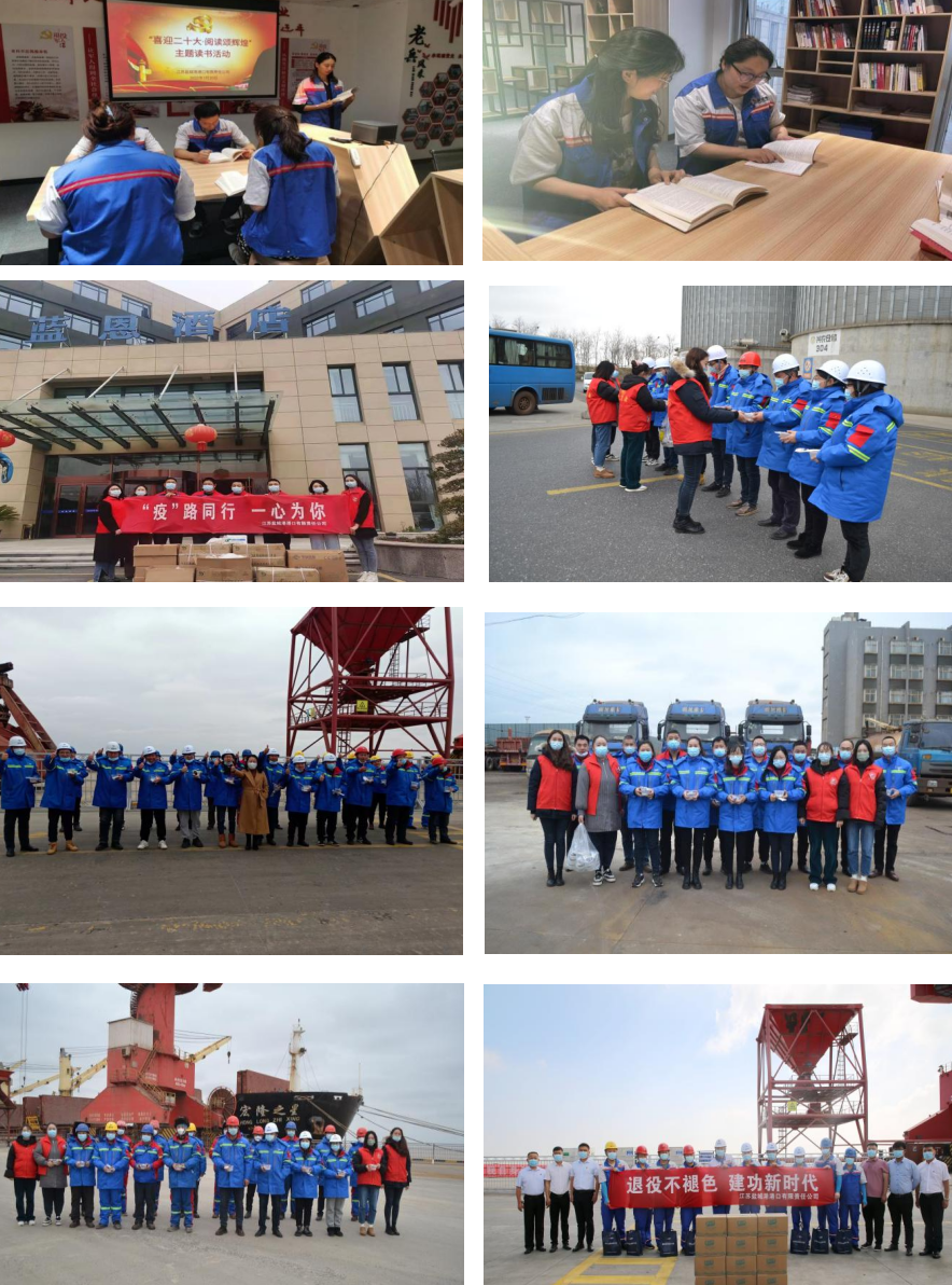 組織開展黨建和團建活動24次,聯(lián)誼活動1次,各類慰問活動10次,組織開展了讀書分享會、主題演講比賽、師徒協(xié)議簽訂、疫情防控志愿服務、無償獻血、“海燕”班組碼頭學雷鋒、“五一”工會送溫暖、職工子女中高考送真情等活動。