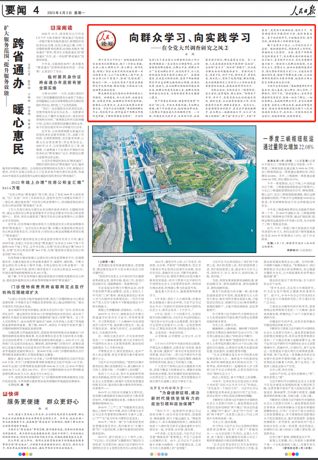 當前,世界百年未有之大變局加速演進,不確定、難預料因素增多,國內(nèi)改革發(fā)展穩(wěn)定面臨不少深層次矛盾躲不開、繞不過,各種風險挑戰(zhàn)、困難問題比以往更加嚴峻復雜,迫切需要通過調(diào)查研究把握事物的本質(zhì)和規(guī)律,找到破解難題的辦法和路徑。對廣大黨員、干部而言,只有通過深入細致的調(diào)查研究,才能把握快速變動的實際,出實招、見實效。在全黨大興調(diào)查研究,堅持黨的群眾路線,堅持實事求是,堅持問題導向,堅持攻堅克難,堅持系統(tǒng)觀念,必將匯聚攻堅克難、勇毅前行的強大力量。