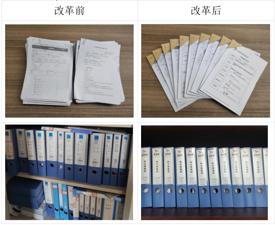 深入崗位調研、整體剖析崗位、全面了解癥結,有助于認識崗位內部運行規則,查找病理根源。改革人員通過合同管理檔案規整實際行動,完成響水港區集團成立以來所有合同1194份標準化歸檔合同整理工作,形成整潔美觀、材料齊全、查找便利、管理科學的合同管理運行規范。