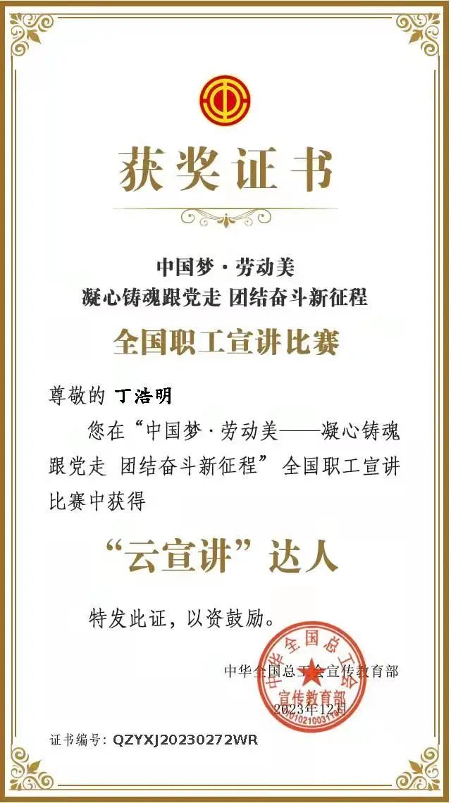 近日,中華全國總工會在廣大職工中組織開展“中國夢·勞動美一凝心鑄魂跟黨走團結奮斗新征程”全國職工宣講比賽,初賽以線上“云宣講”方式進行。集團工會聯合會有針對性地組織廣大職工參賽,迅速組織發動制作短視頻,在鼓勵廣大職工的同時,重點激勵具備一定榮譽基礎、榮獲過各級各類勞動模范、五一勞動獎章等榮譽稱號的職工,充分發揮示范帶頭作用。其中,集團大豐港區成品油水上加油站王亞敏和航運集團上港國際公司丁浩明同志榮獲中華全國總工會宣傳教育部頒發的“云宣講”達人稱號。