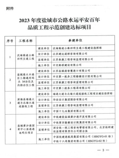 近日,鹽城市交通運輸局發(fā)布2023年度鹽城市公路水運平安百年品質(zhì)工程創(chuàng)建示范達標項目的通知,大豐港區(qū)通用碼頭3#泊位項目成功當選。