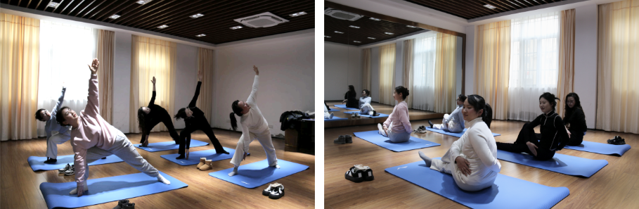 大家時而曲腿、時而展臂