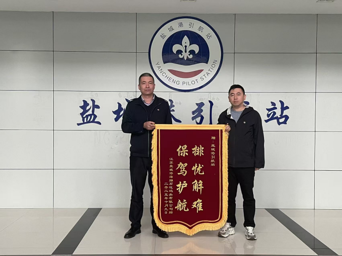 接到求助后,引航站迅速組織專(zhuān)業(yè)團(tuán)隊(duì)趕赴現(xiàn)場(chǎng)。在登輪勘察后,團(tuán)隊(duì)成員綜合研判氣象條件與作業(yè)進(jìn)度,決定待貨物卸載完畢后再擇機(jī)出港。當(dāng)晚22:00,引航員登輪,在拖輪配合下頂風(fēng)浪開(kāi)始引航。面對(duì)復(fù)雜海況,引航員依托豐富經(jīng)驗(yàn)謹(jǐn)慎操縱船舶,通過(guò)實(shí)時(shí)監(jiān)測(cè)風(fēng)浪、科學(xué)規(guī)劃航線,確保船舶以安全航速穩(wěn)步離港。船舶航行途中遭遇突發(fā)陣風(fēng),引航員迅速采取應(yīng)急措施,及時(shí)修正航向,歷經(jīng)數(shù)小時(shí)緊張作業(yè),最終成功將“探界者”輪安全引領(lǐng)至外海避風(fēng)錨地。事后,江蘇鹽城港海融石化碼頭有限公司專(zhuān)程向鹽城港引航站贈(zèng)送錦旗,書(shū)以“排憂(yōu)解難 保駕護(hù)航”表達(dá)謝意。