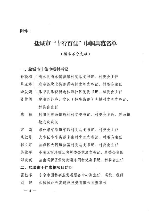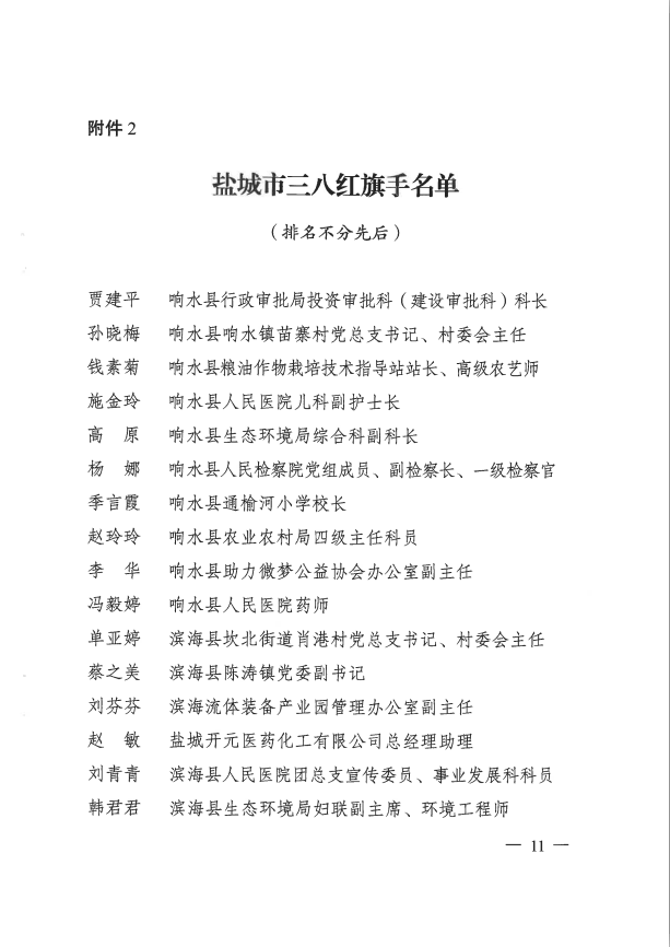 近日,鹽城市婦女聯(lián)合會發(fā)布《關(guān)于表揚鹽城“十行百佳”巾幗典范暨鹽城市三八紅旗手的通報》,袁欣同志榮獲“鹽城市十佳巾幗項目功臣”“鹽城市三八紅旗手”榮譽稱號。